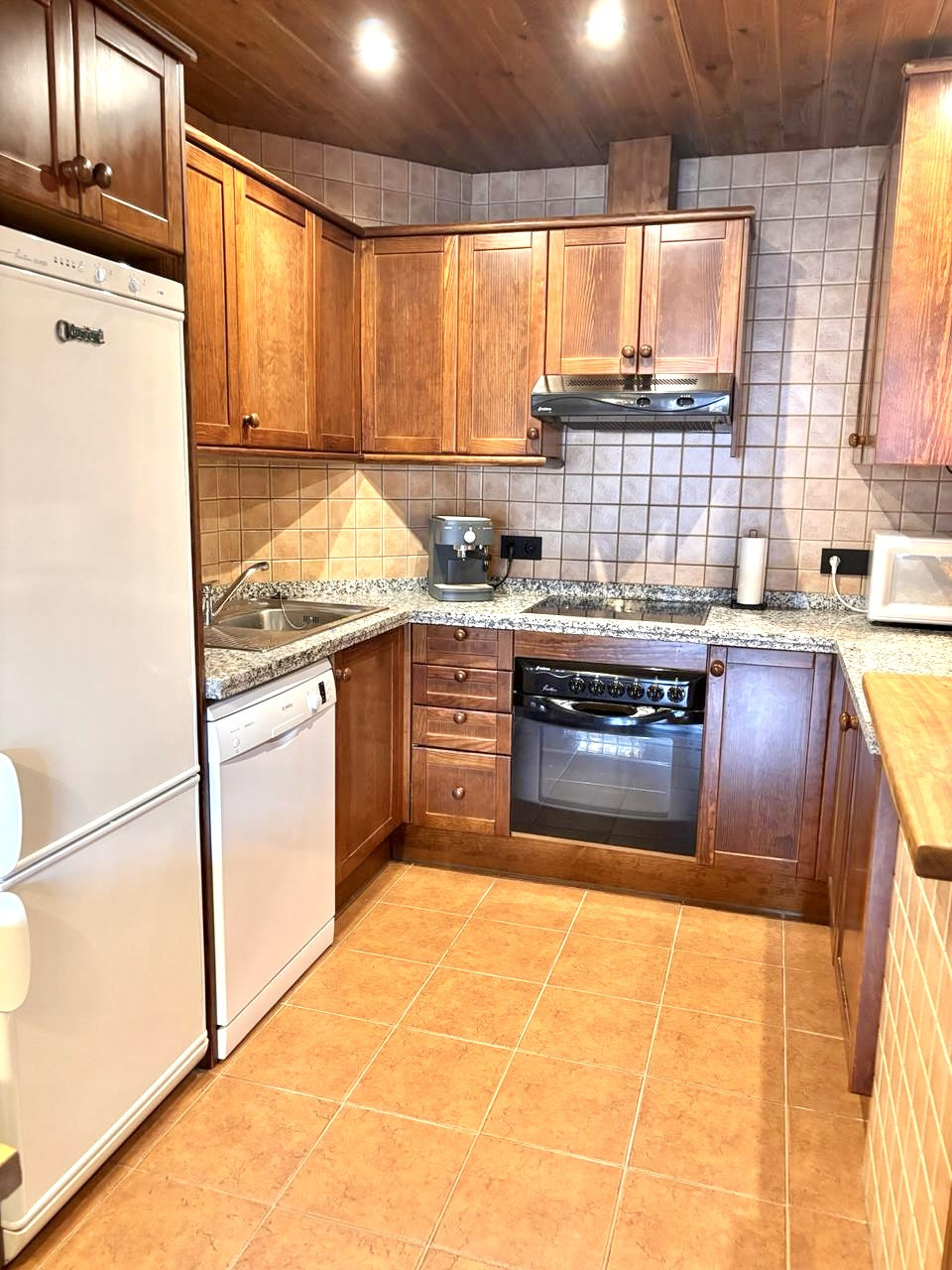 Situado en una segunda planta, el apartamento destaca por su decoración cuidada y mobiliario de calidad, creando un espacio cálido y confortable. La distribución es perfecta para 1 familia
