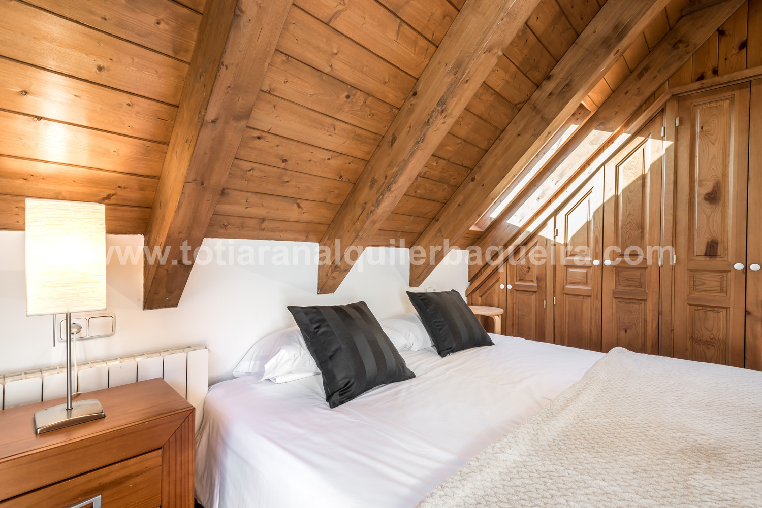 Esquiros by Totiaran is a magnificent single-storey dwelling of 85 m2, composed of a living room with a fireplace and a dining room with an open-plan kitchen. The dining table is for 6 people. 2 more chairs can be added. Three bedrooms, one main bedroom, with a double bed of 150 cm, incorporated bathroom with bathtub and it has a television inside the bedroom; another bedroom with 2 single beds and the third bedroom with 2 bunk beds. These two rooms are served by a second bathroom with a shower tray.