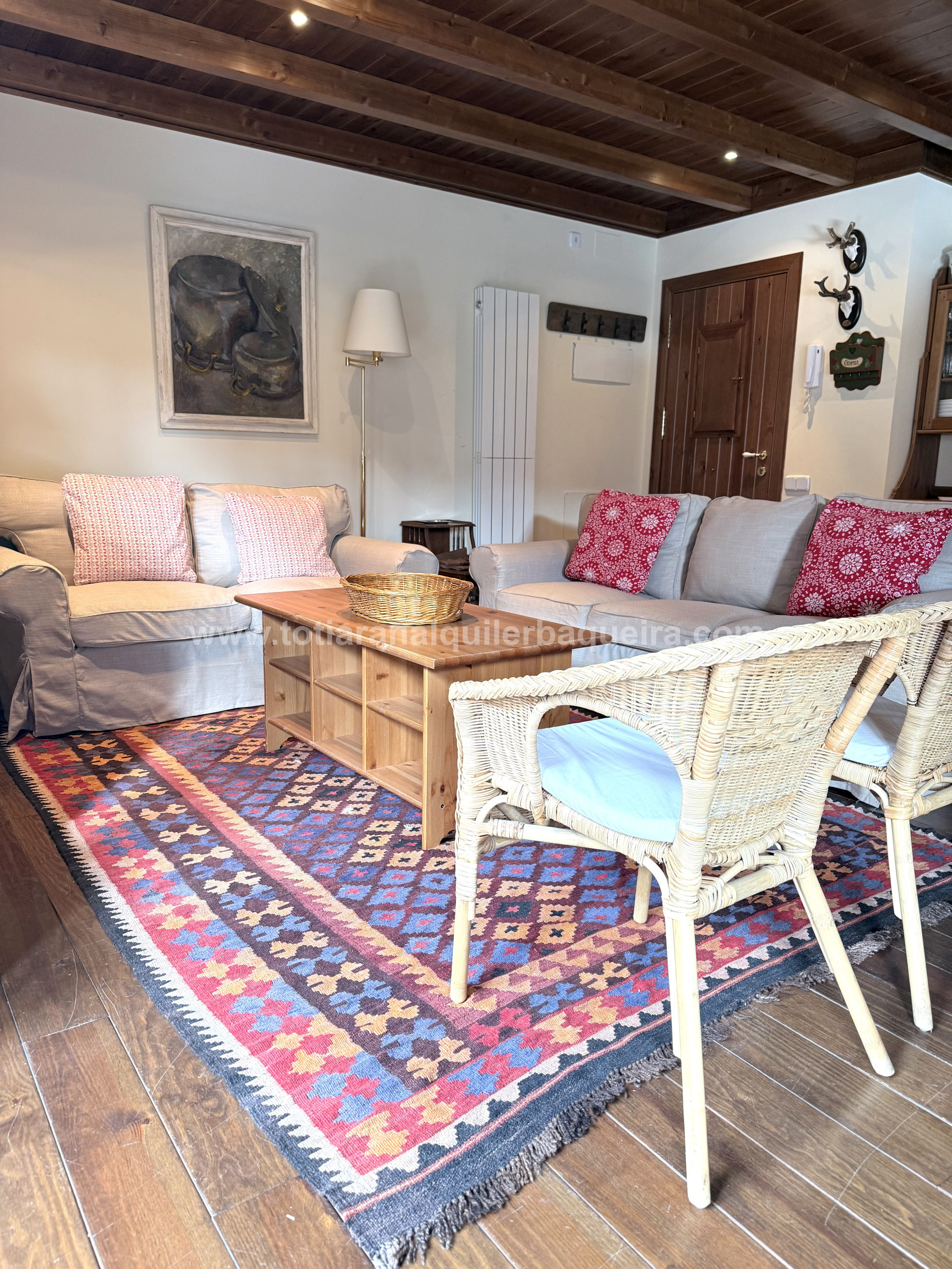 Esquiros by Totiaran is a magnificent single-storey dwelling of 85 m2, composed of a living room with a fireplace and a dining room with an open-plan kitchen. The dining table is for 6 people. 2 more chairs can be added. Three bedrooms, one main bedroom, with a double bed of 150 cm, incorporated bathroom with bathtub and it has a television inside the bedroom; another bedroom with 2 single beds and the third bedroom with 2 bunk beds. These two rooms are served by a second bathroom with a shower tray.