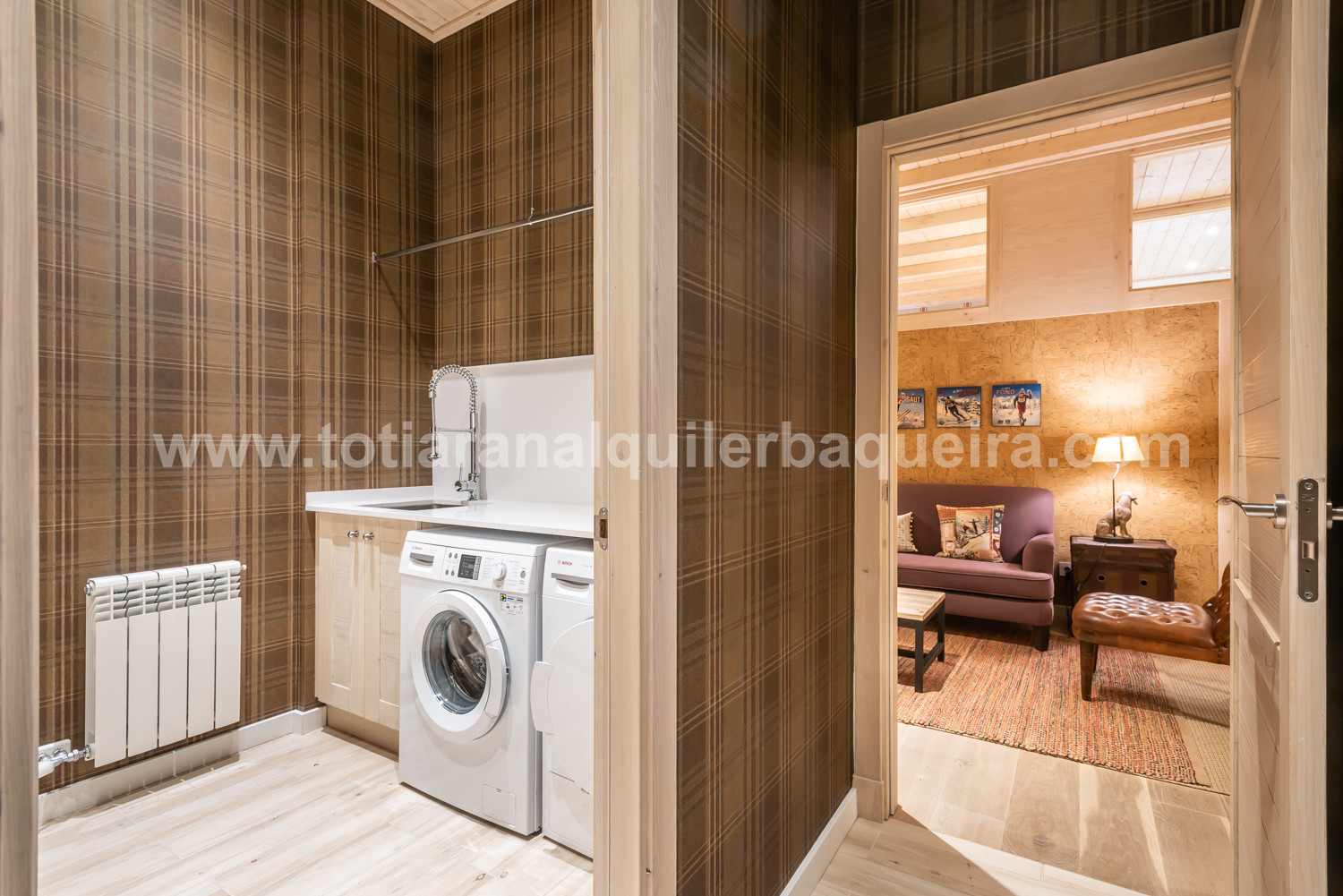 Across the basement is the laundry room. This wonderful house is completed by two parking spaces and two ski storage cabinets.