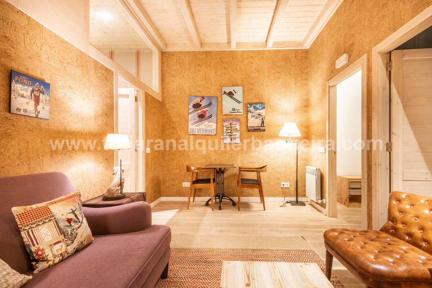 When you arrive at the building block, you go up the stairs to the second floor and upon entering, you will find a spacious living room furnished with comfortable sofas where a lot of natural light comes in and opposite a fireplace, this entire area is ideal for enjoying time together as it is large. On the opposite side of the fireplace is the dining room, which also has windows to enjoy the views. Next to it is the kitchen, a fully enclosed area equipped with a stove, oven, electric coffee maker, microwave, a functional kitchen. The dining table is for 8 people. 2 more chairs can be added.