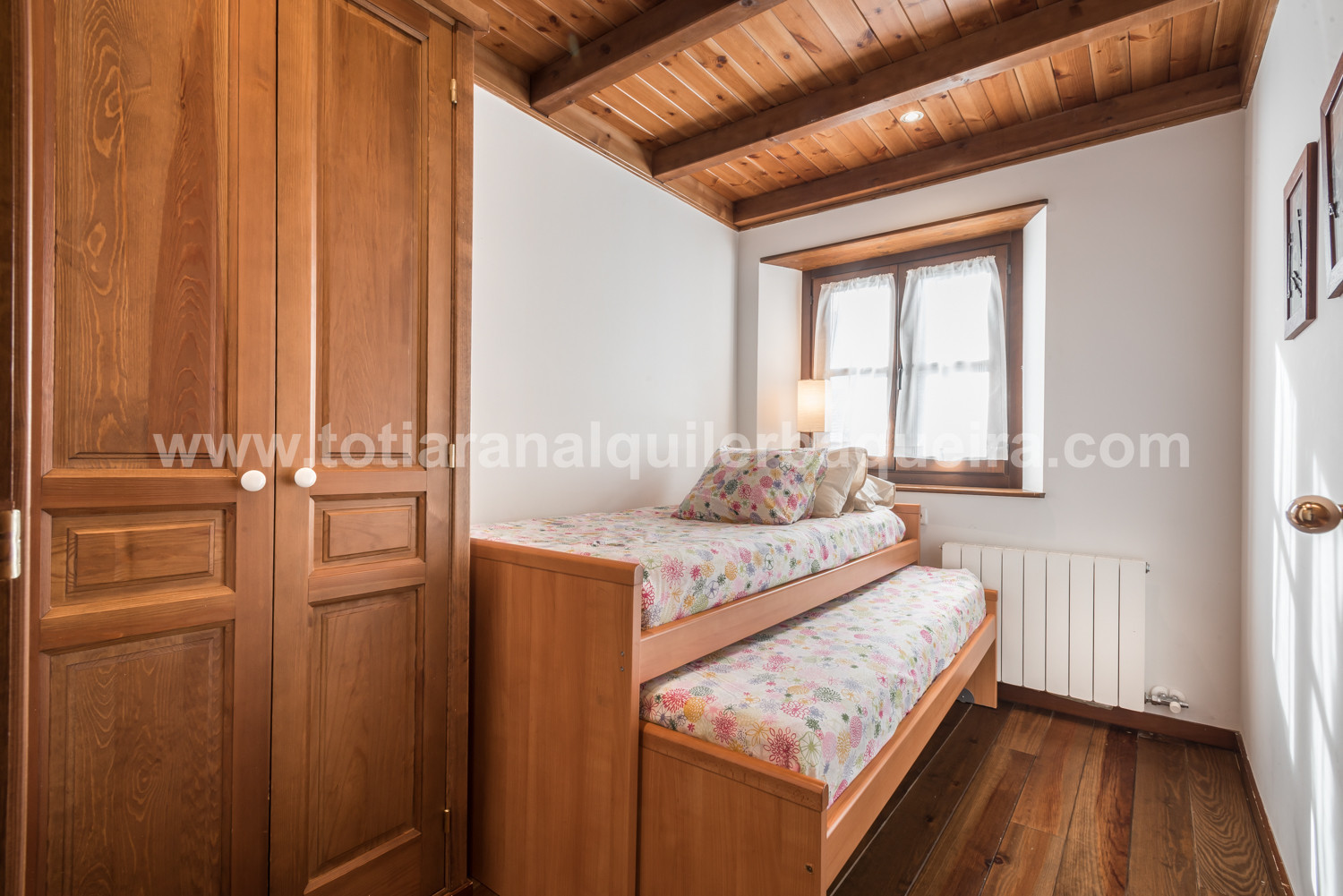 Au rez-de-chaussée, vous trouverez un grand salon-séjour avec cheminée, une salle à manger avec cuisine américaine et une chambre principale avec deux lits individuels réunis et une salle de bain privative avec douche. De plus, il y a deux chambres supplémentaires avec 2 lits gigognes chacune, idéal pour héberger 4 personnes chacune, et une deuxième salle de bain complète avec baignoire.