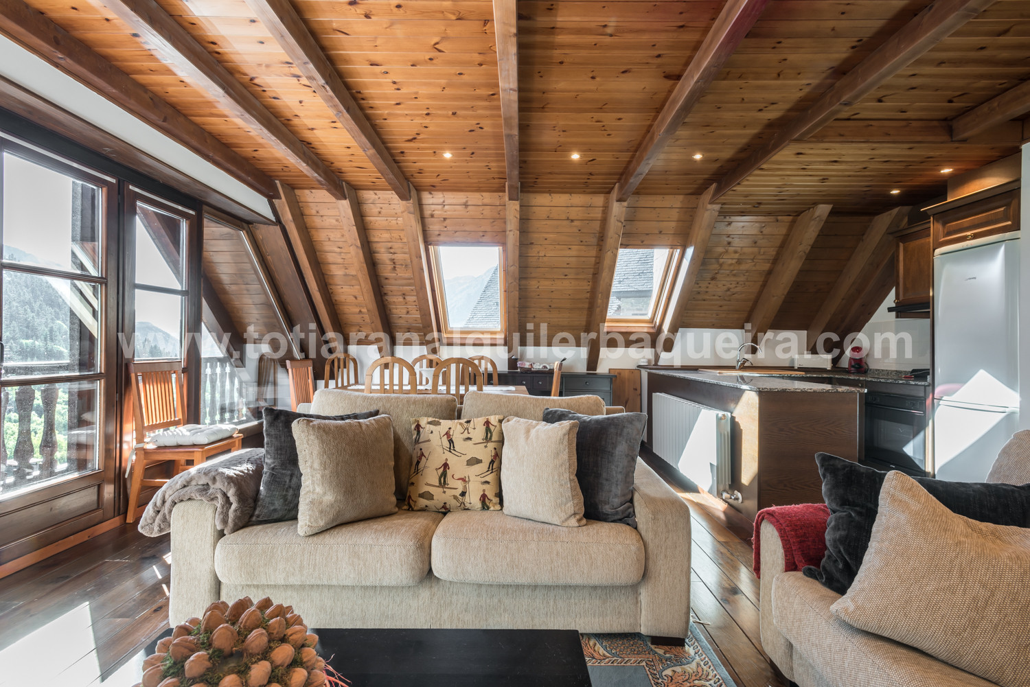 Découvrez la beauté d'un charmant appartement situé dans la résidence Val de Ruda, juste à côté des pistes de ski à la cote 1500 de Baqueira Beret, avec un accès direct au téléphérique, en faisant l'endroit parfait pour les amateurs de ski.