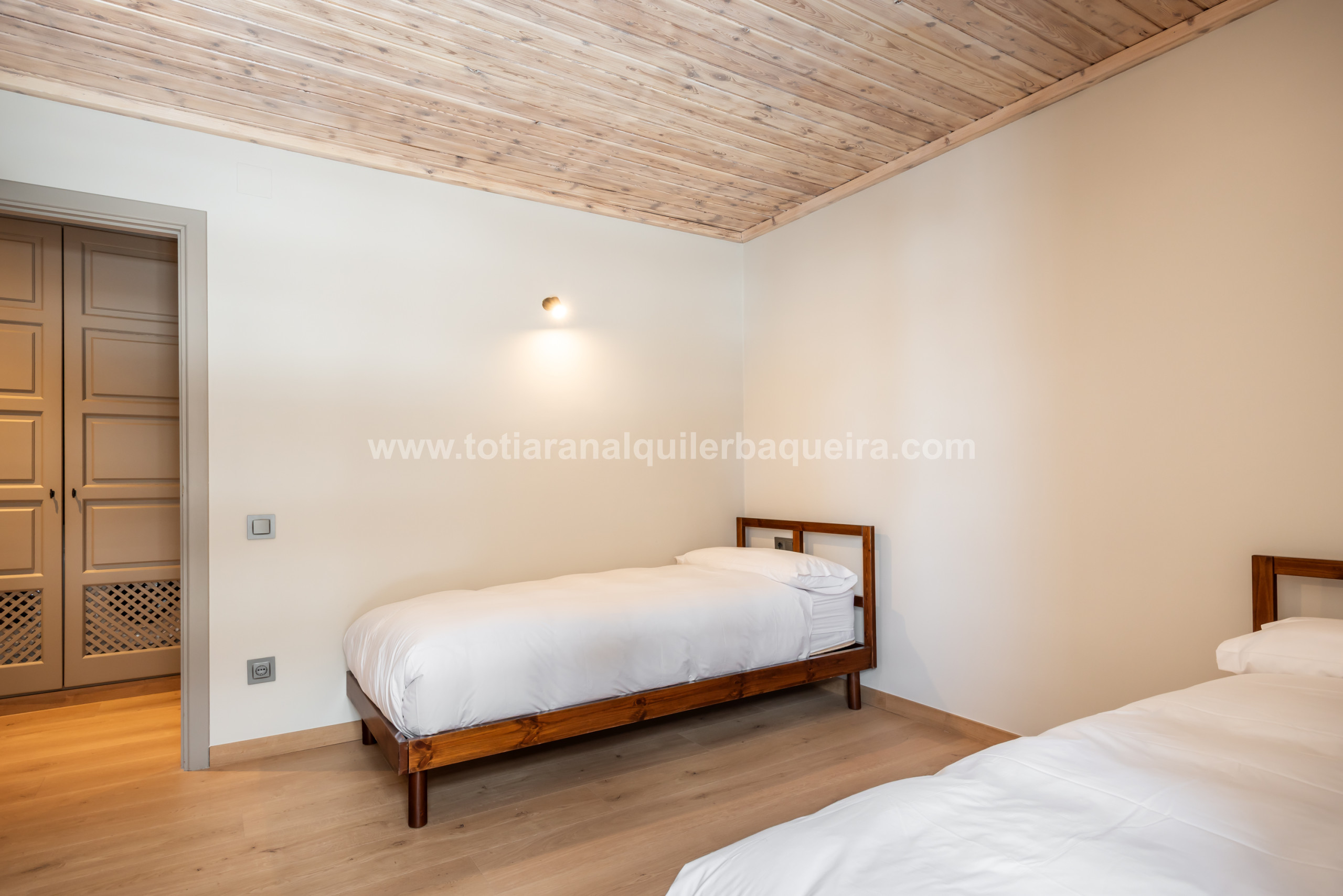 Ensuite, la deuxième et la troisième chambre se trouvent à gauche de l'entrée de la maison. Si nous avançons dans le couloir, nous trouvons une chambre avec deux lits individuels. Entre cette chambre et la troisième chambre, vous trouverez un couloir où se trouve une autre salle de bain, qui dessert ces deux chambres.