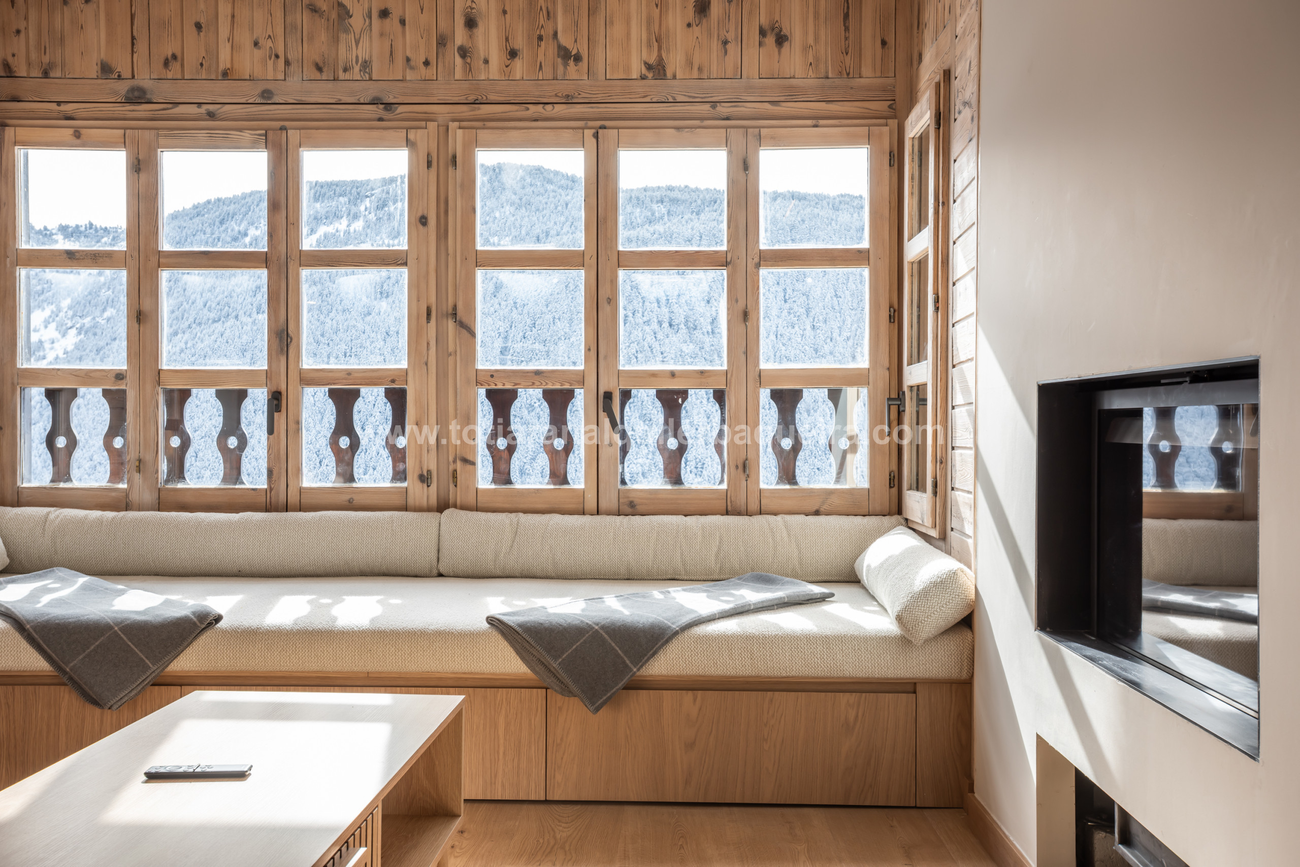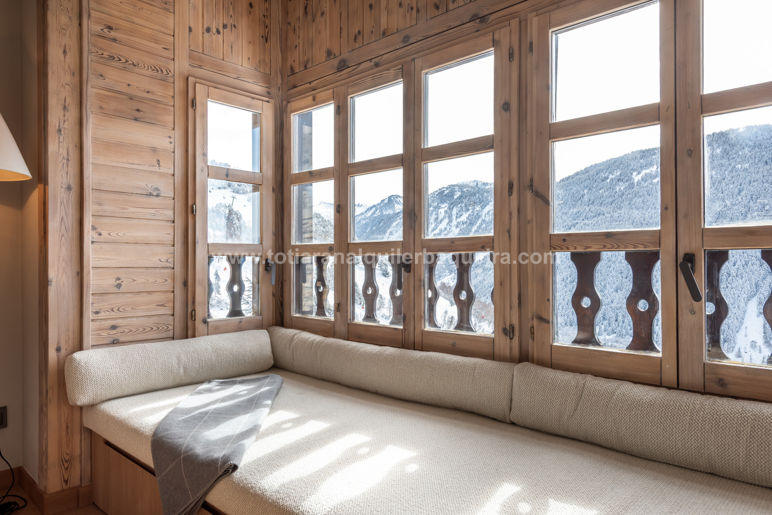Elle dispose d'un magnifique salon où entre beaucoup de lumière naturelle et offre des vues spectaculaires sur les montagnes, appréciables surtout depuis sa terrasse exceptionnelle.